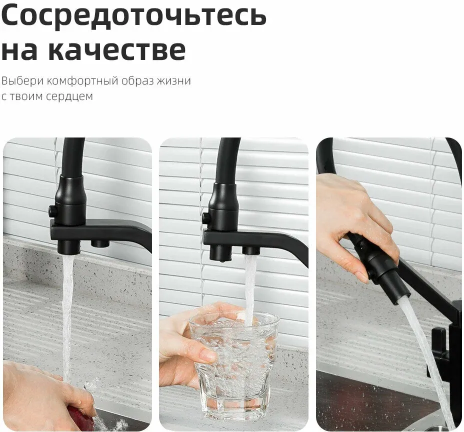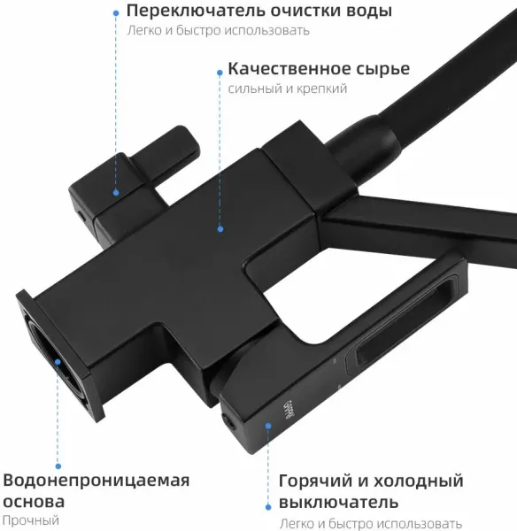 Смеситель для кухни Gappo G4317-6 со встроенным фильтром под питьевую воду чёрный купить