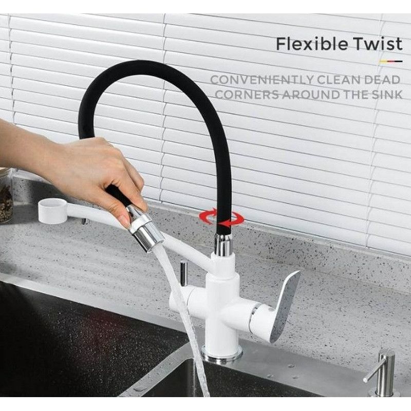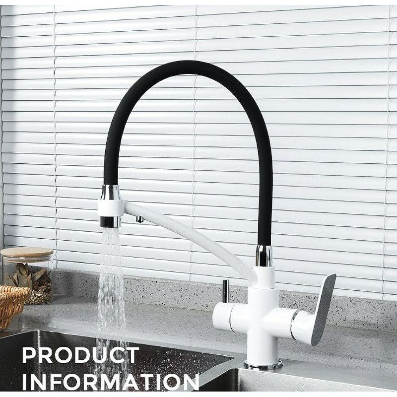 - Излив: поворотный, силиконовый, гибкий, цвет - черный / белый
