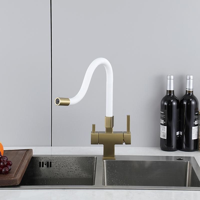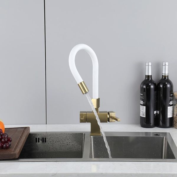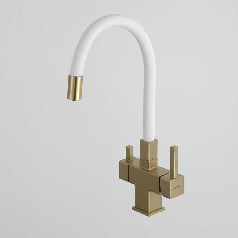 Смеситель для кухни Gappo G4395-33 с подключением фильтра питьевой воды и гибким изливом золото/белый купить