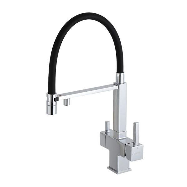 Смеситель для кухни Gappo G4395-50 с подключением фильтра питьевой воды и гибким изливом хром/чёрный купить