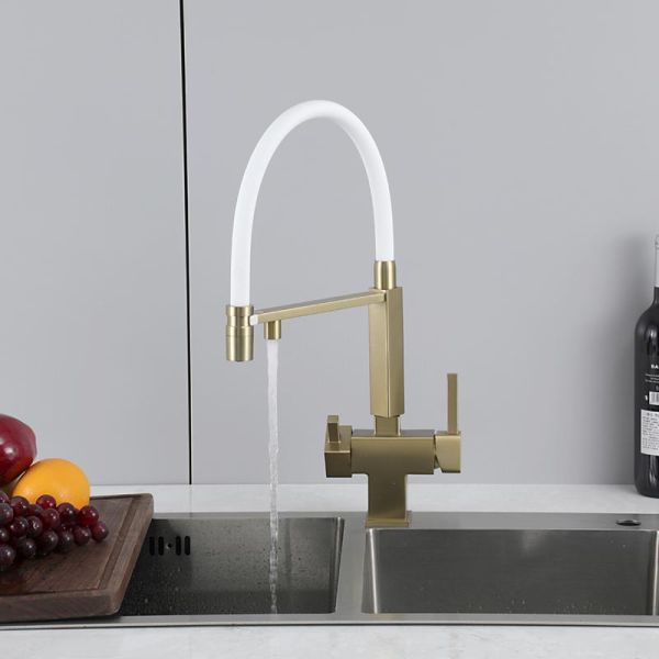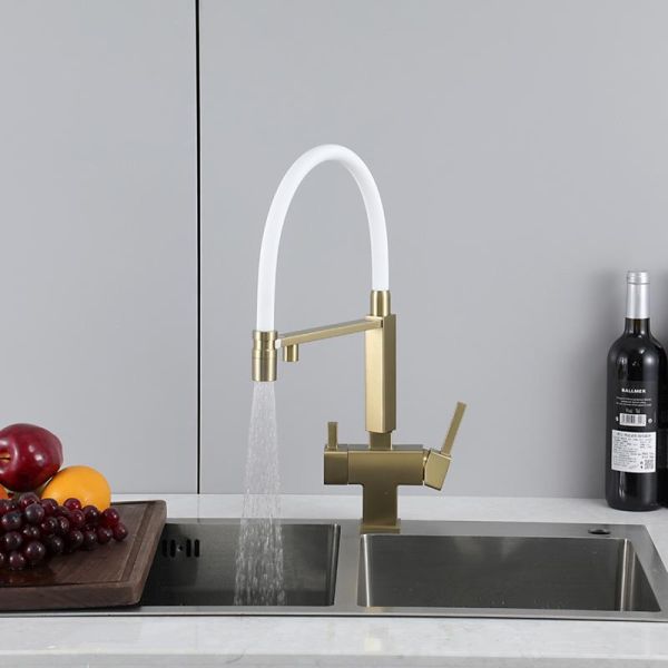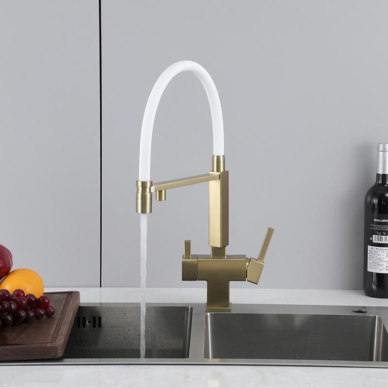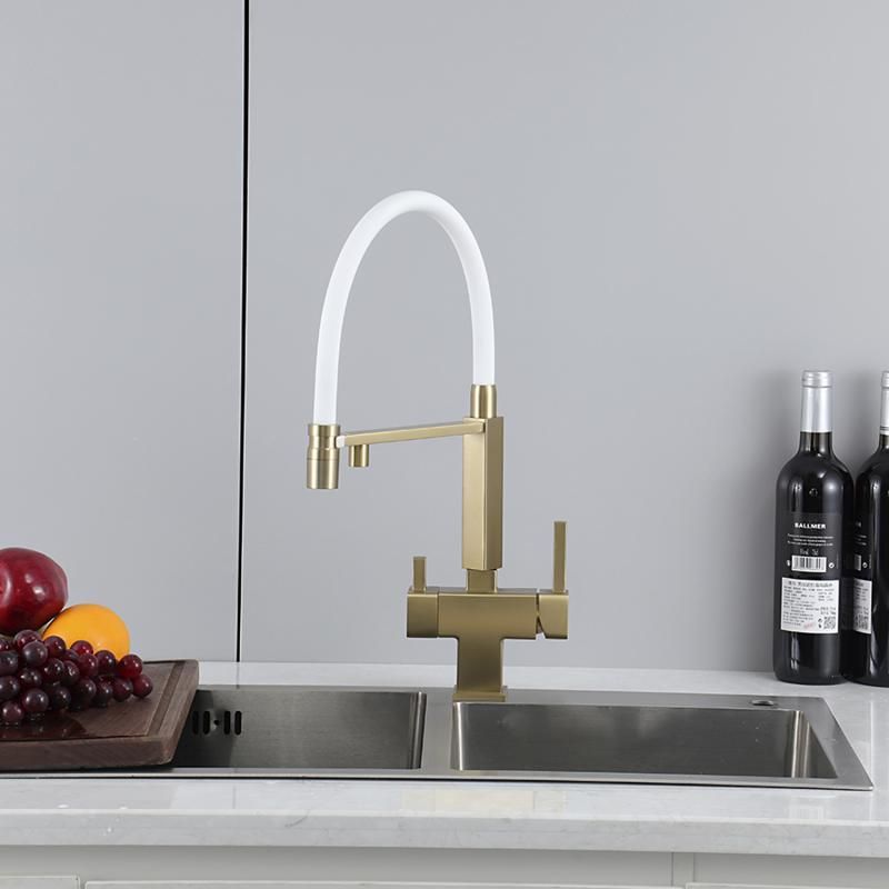 Смеситель для кухни Gappo G4395-53 с подключением фильтра питьевой воды и гибким изливом золото/белый купить