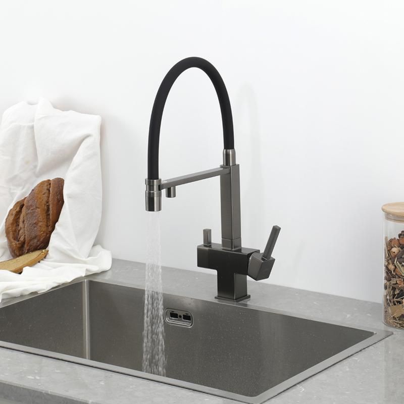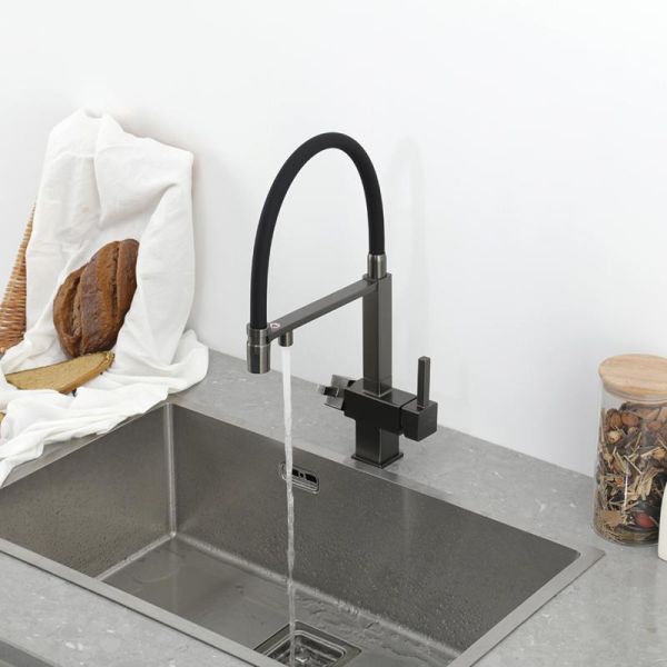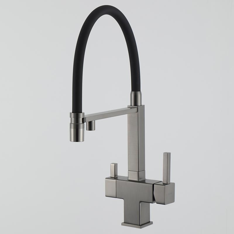 Смеситель для кухни Gappo G4395-59 с подключением фильтра питьевой воды и гибким изливом оружейная сталь/чёрный купить