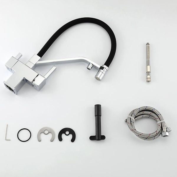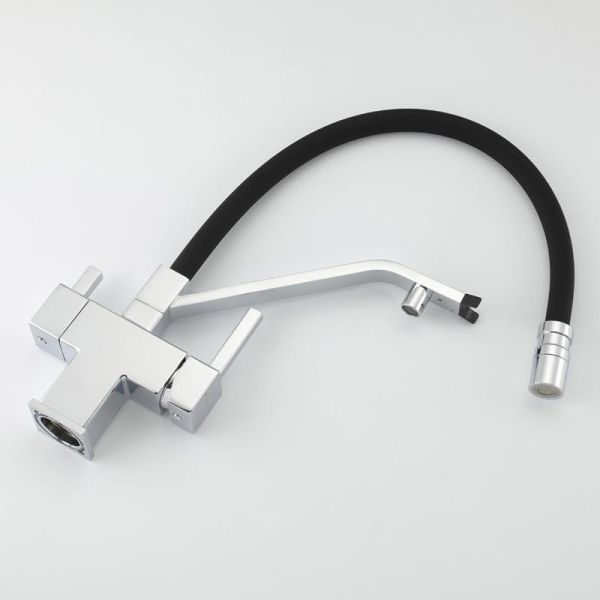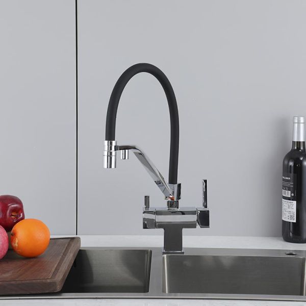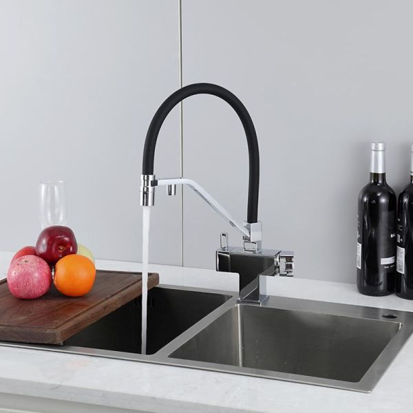 Смеситель для кухни Gappo G4395-60 с подключением фильтра питьевой воды и гибким изливом хром/чёрный купить