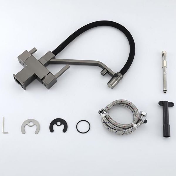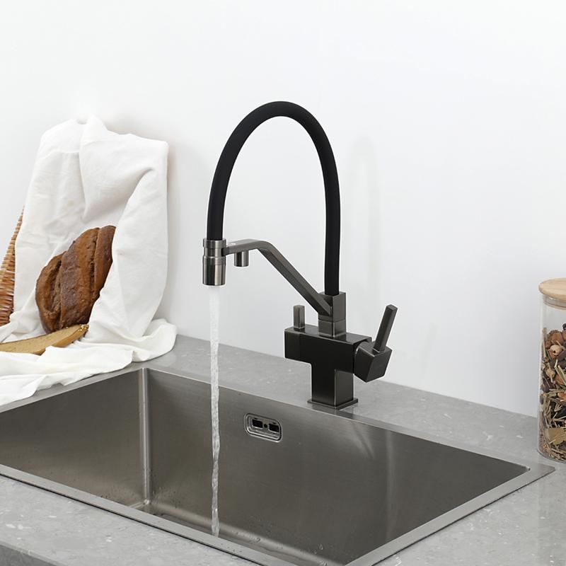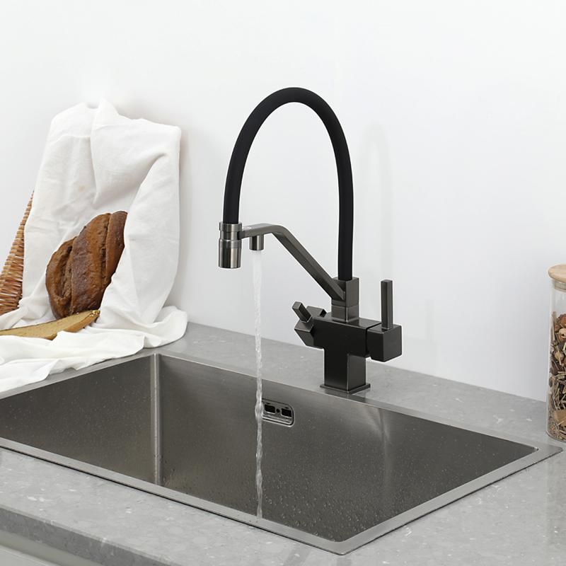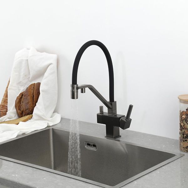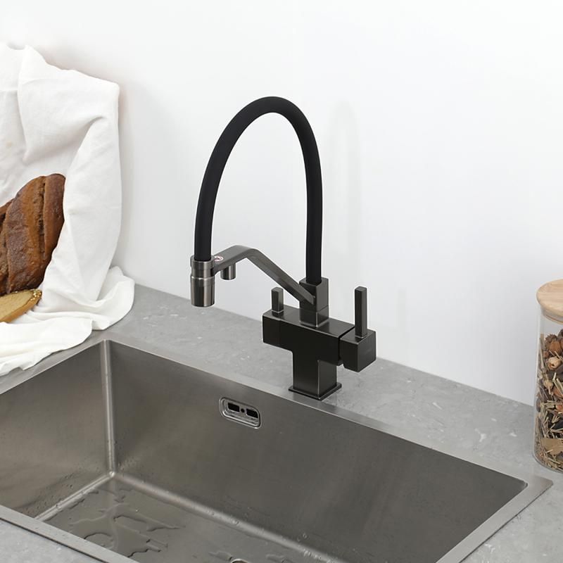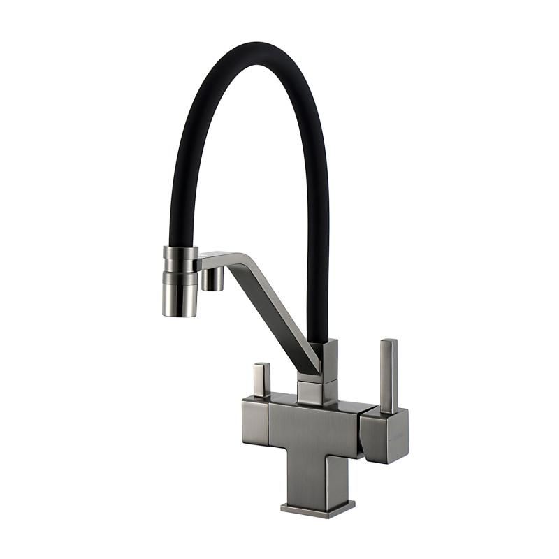 Смеситель для кухни Gappo G4395-69 с подключением фильтра питьевой воды и гибким изливом оружейная сталь/чёрный купить