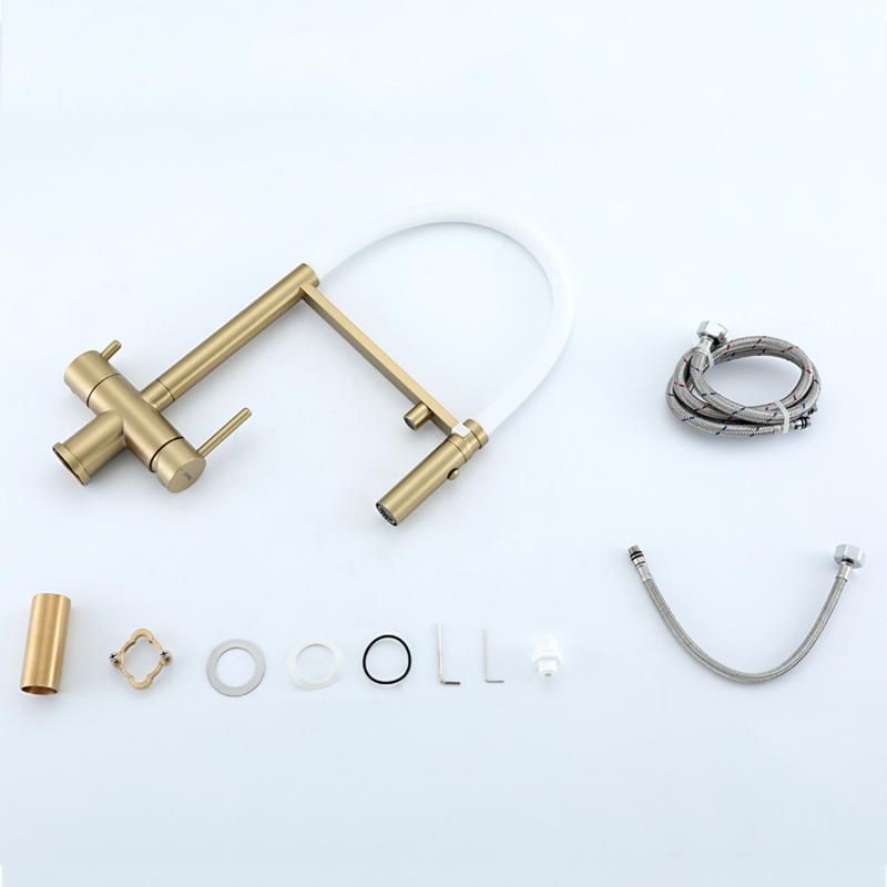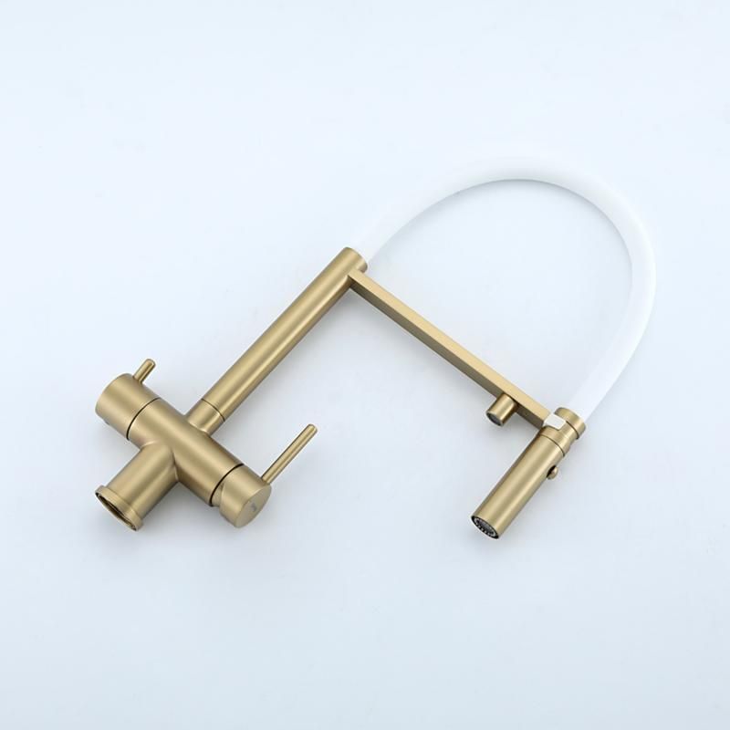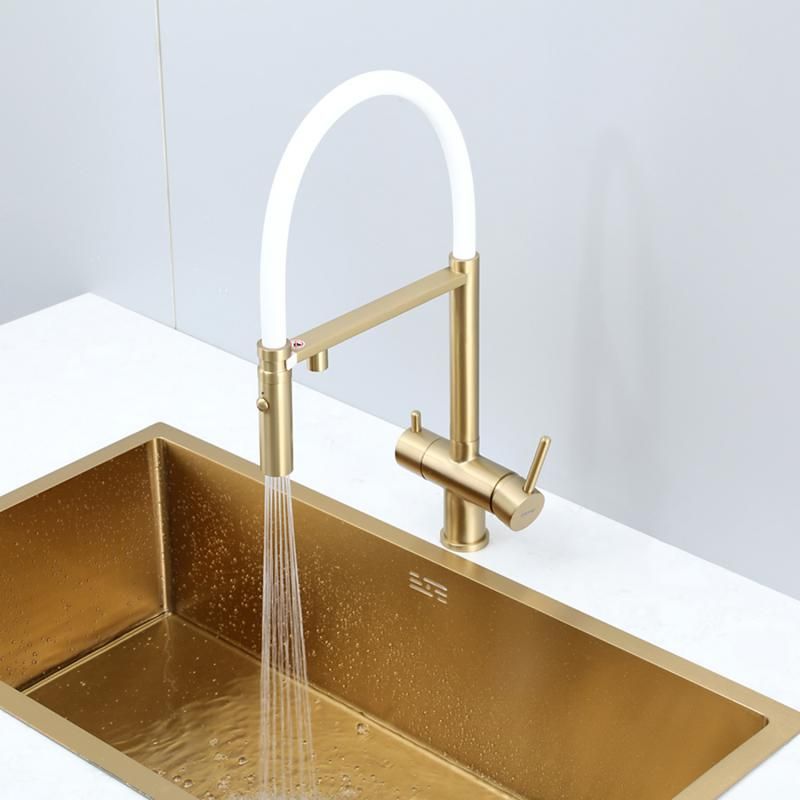 Смеситель для кухни Gappo G4397-83 с подключением фильтра питьевой воды и гибким изливом золото/белый купить