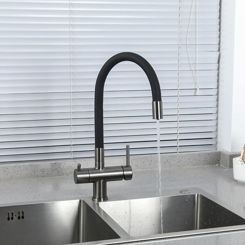 Смеситель для кухни Gappo G4398-39 под фильтр с гибким изливом оружейная сталь купить