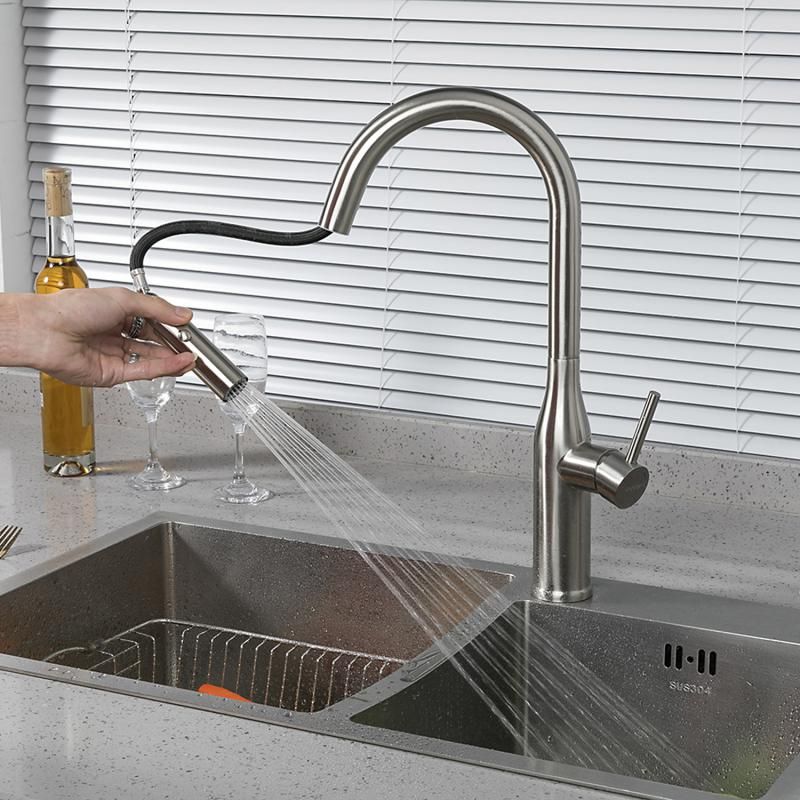 Смеситель для кухни Gappo G4398-45 с выдвижной лейкой оружейная сатин купить