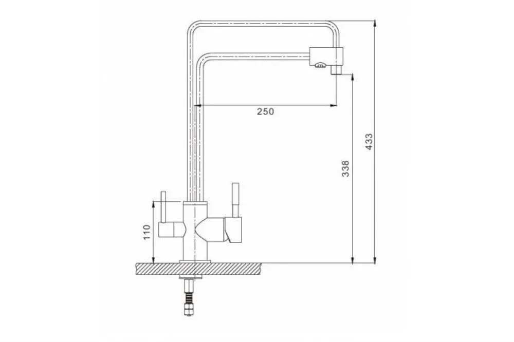 - высота смесителя: 433 мм