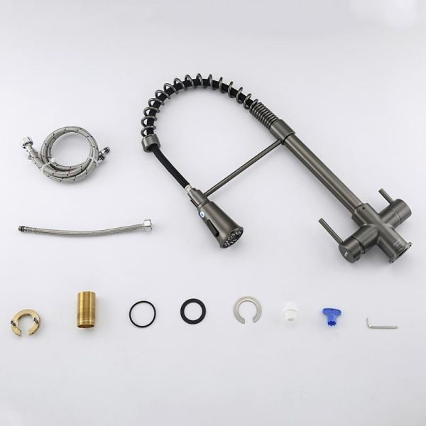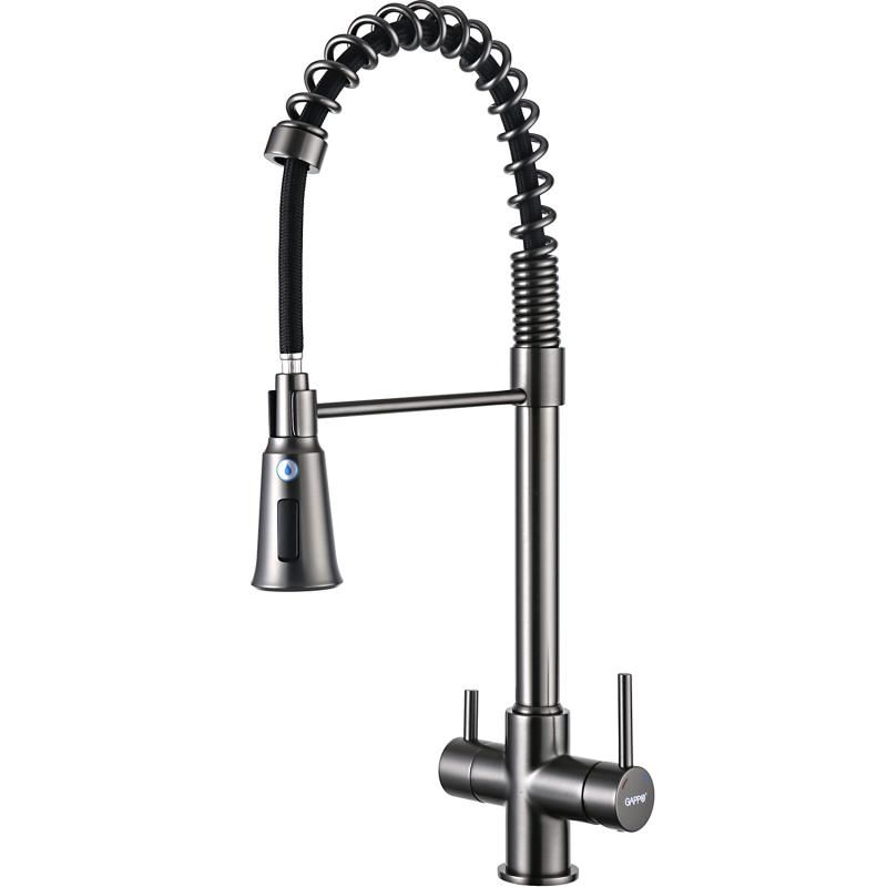 Смеситель для кухни Gappo G4398-69 с гибким выдвижным изливом и подключением фильтра питьевой воды оружейная сталь купить