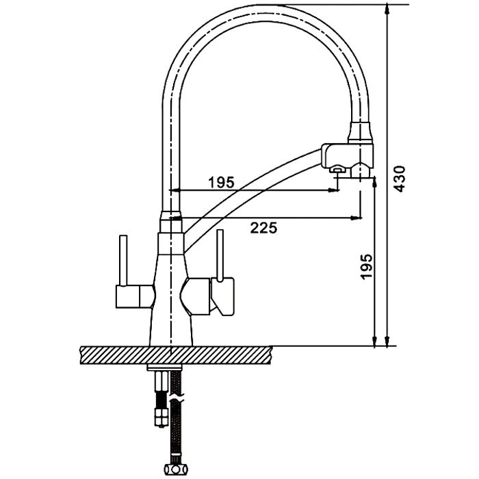 - высота смесителя: 1100 мм