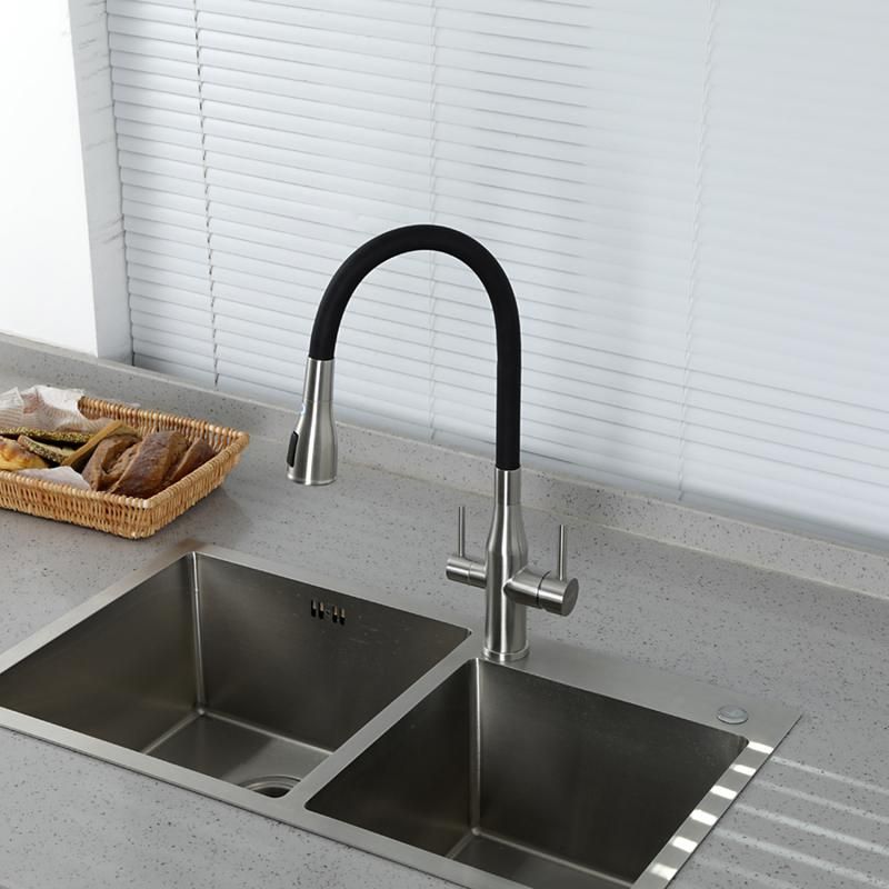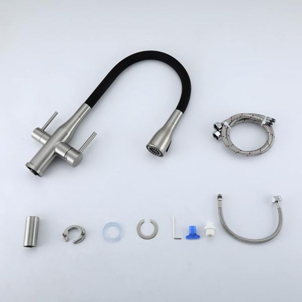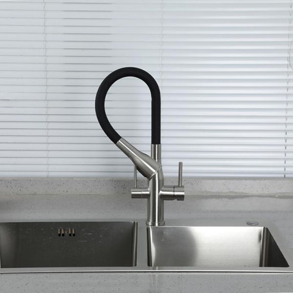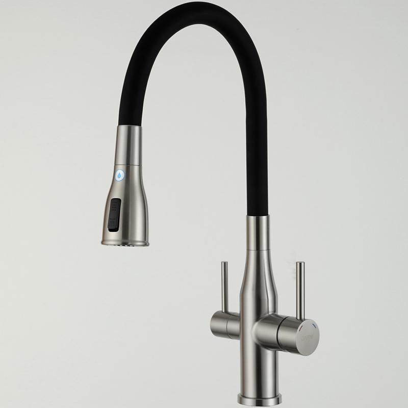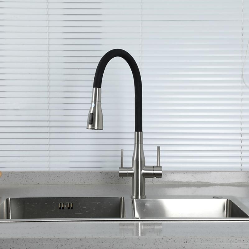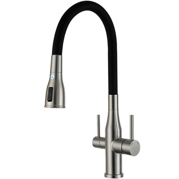 Смеситель для кухни Gappo G4399-65 с гибким изливом и подключением фильтра питьевой воды сатин купить