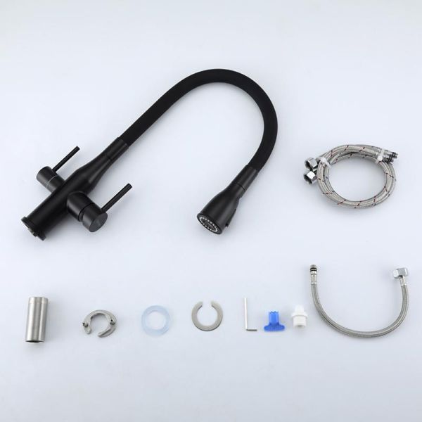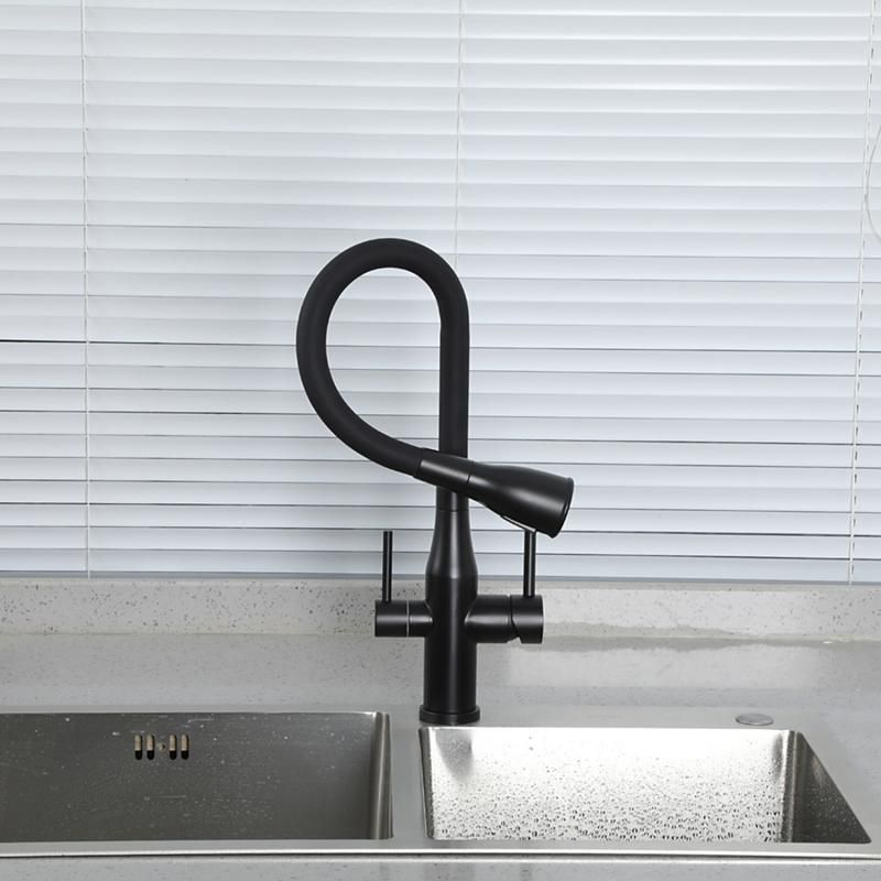 Смеситель для кухни Gappo G4399-66 с гибким изливом и подключением фильтра питьевой воды чёрный купить
