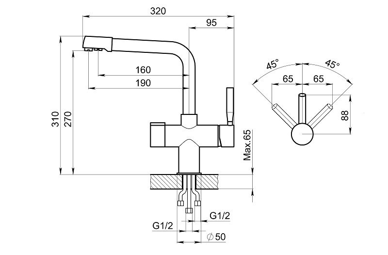 Гибкая подводка, комплект креплений, переходник для подключения фильтра с питьевой водой