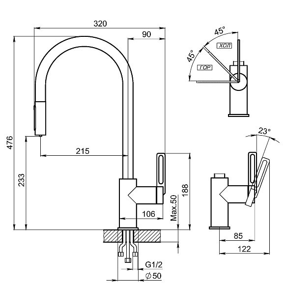 Выдвижной излив:да