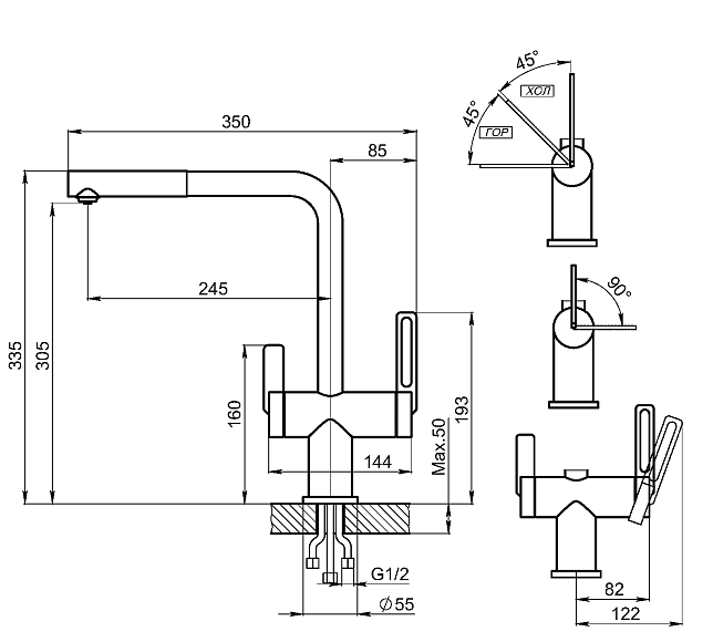 Смеситель для кухни Granula 8170, НЕРЖ Нерж