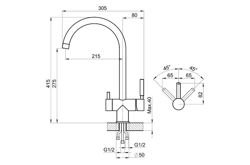 Смеситель для кухни Granula Kitchen Space 7104, ЧЕРНЫЙ МАТОВЫЙ