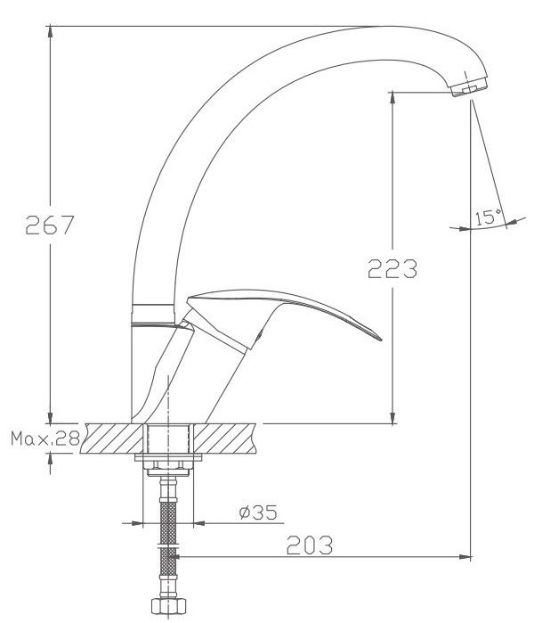Смеситель для кухни бренда Haiba.Изготовлен из латуни.Картридж 40 мм.Укомплектован аэратором.Гибкая подводка 40 см.С поворотным изливом
