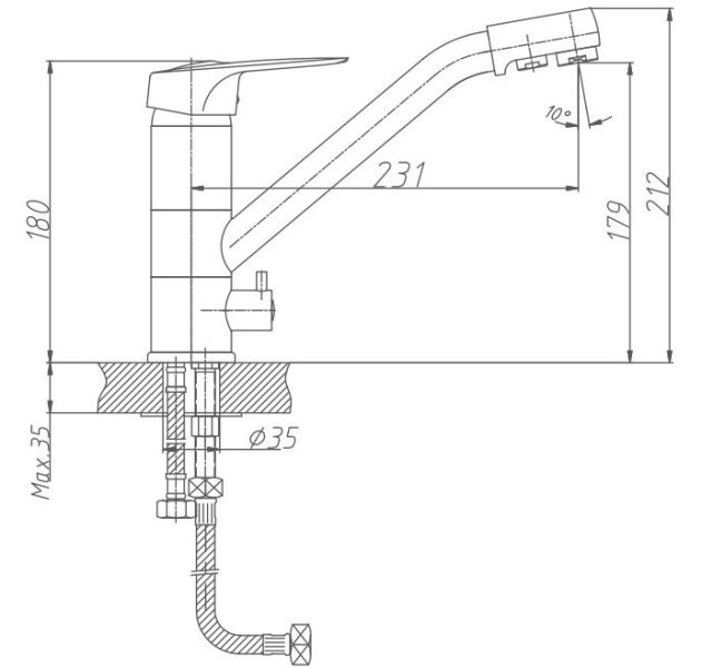 Смеситель для кухни бренда Haiba.Изготовлен из латуни.Картридж 40 мм.Укомплектован аэратором.Гибкая подводка 40 см.С поворотным изливом.