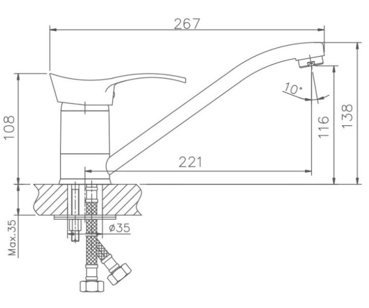 Смеситель для кухни бренда Haiba.Изготовлен из латуни.Картридж 40 мм.Укомплектован аэратором.Гибкая подводка 40 см.С поворотным изливом.