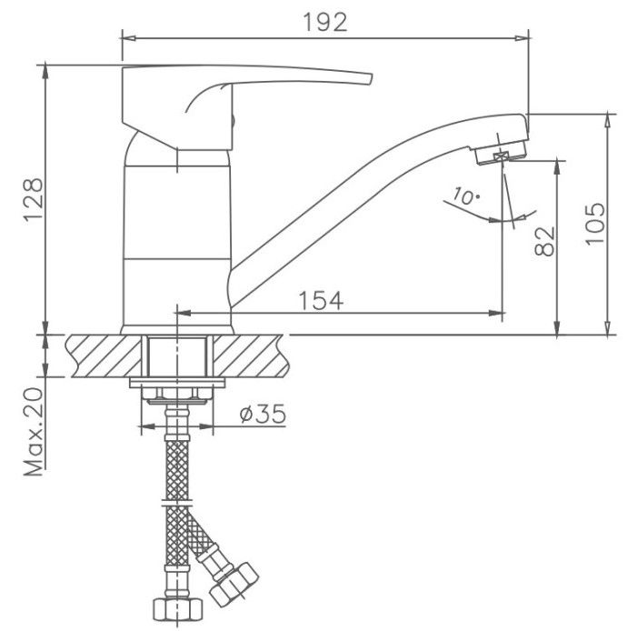 Смеситель для кухни бренда Haiba.Изготовлен из латуни.Картридж 40 мм.Укомплектован аэратором.Гибкая подводка 40 см.С поворотным изливом.