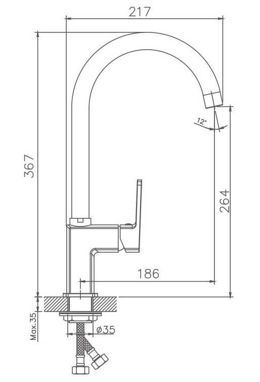 Смеситель для кухни бренда Haiba.Изготовлен из латуни.Картридж 30 мм.Укомплектован аэратором.Гибкая подводка 45 см.С поворотным изливом.