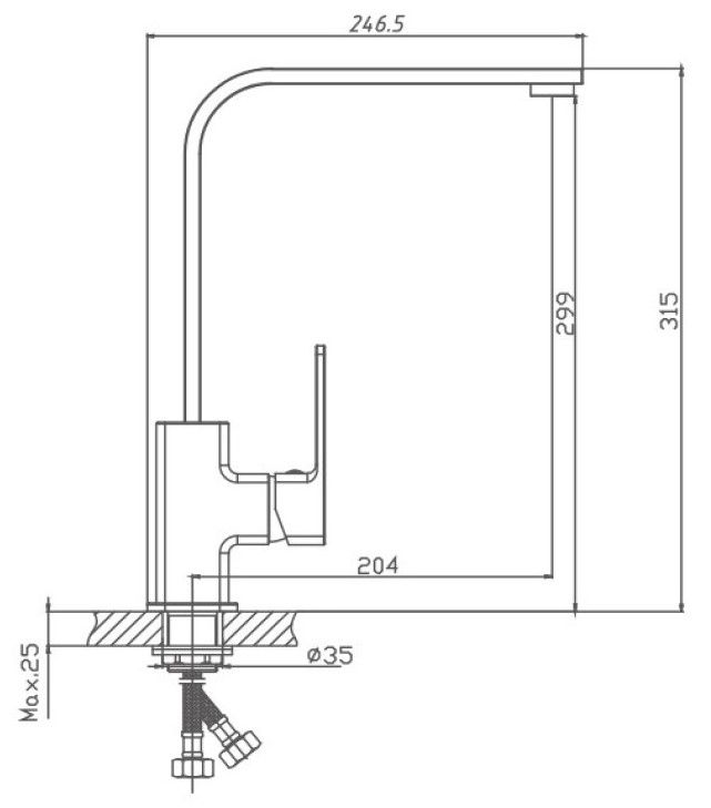 Смеситель для кухни бренда Haiba.Изготовлен из латуни.Картридж 35 мм.Укомплектован аэратором.Гибкая подводка 45 см.С поворотным изливом.