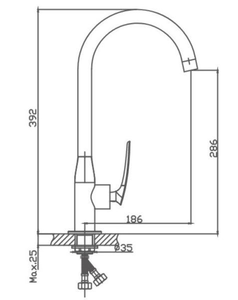 Смеситель для кухни бренда Haiba.Изготовлен из латуни.Картридж 30 мм.Укомплектован аэратором.Гибкая подводка 45 см.С поворотным изливом.