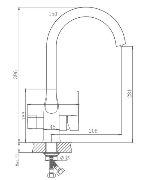 Смеситель для кухни бренда Haiba.Изготовлен из латуни.Картридж 35 мм.Укомплектован аэратором.Гибкая подводка 45 см.С поворотным изливом.Есть подключение фильтра для воды.