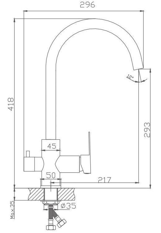 Смеситель для кухни бренда Haiba.Изготовлен из нержавеющей стали.Картридж 35 мм.Укомплектован аэратором.Гибкая подводка 40 см.С поворотным изливом.