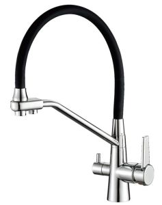 Смеситель для кухни Haiba HB76855 с подключением фильтра питьевой воды чёрный/хром купить