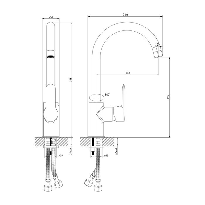 Высота смесителя:33.8