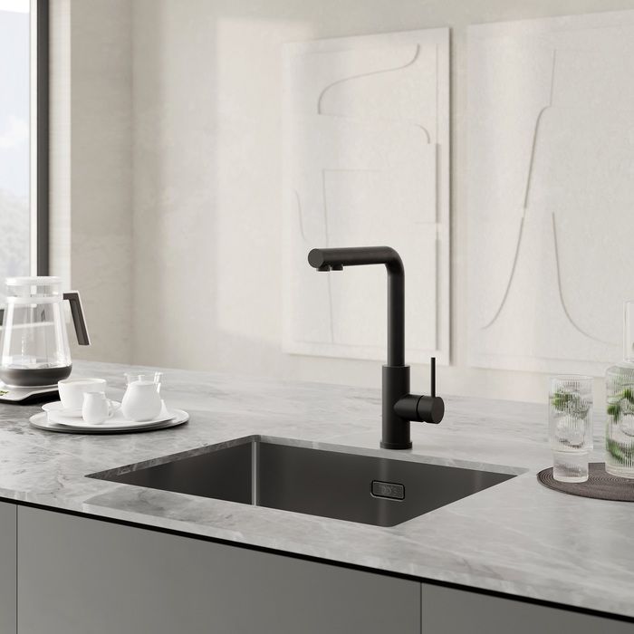 Стильный черный смеситель Rule – премиальный востребованный дизайн и функционал по адекватной цене.