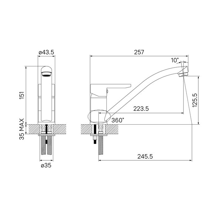 Гибкий излив:нет