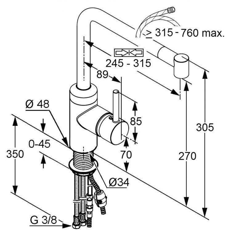 - гибкая подводка G 3/8
