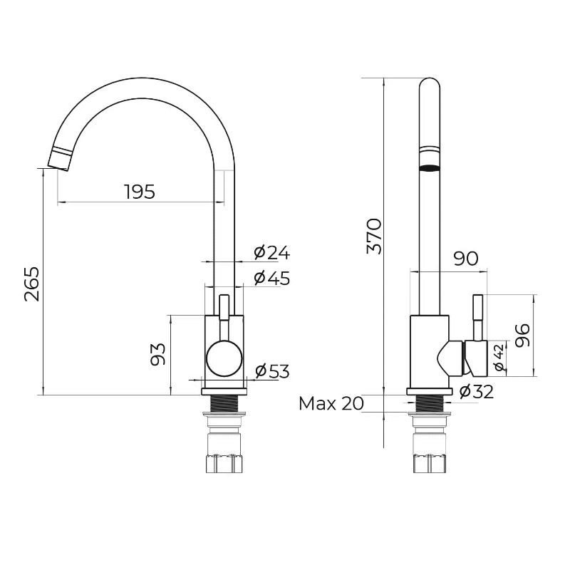 Высота смесителя:37