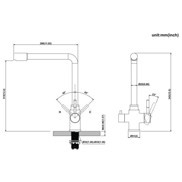 Высота смесителя:34.3