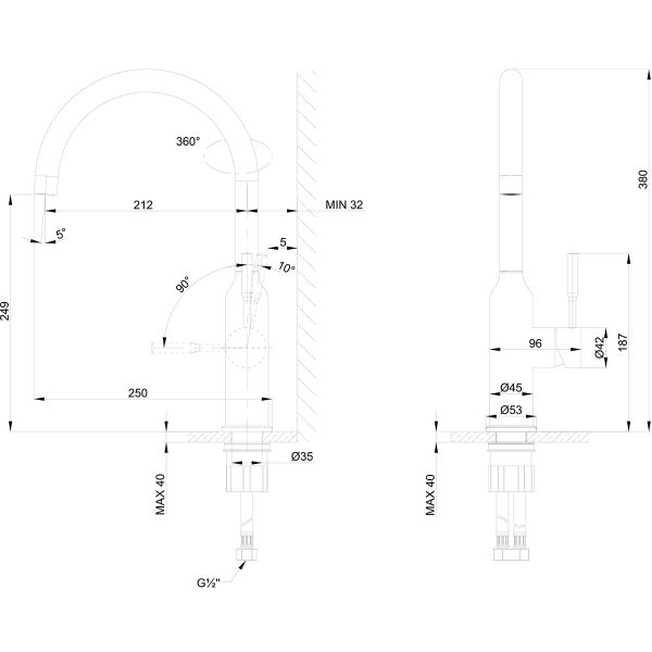 Высота смесителя:38