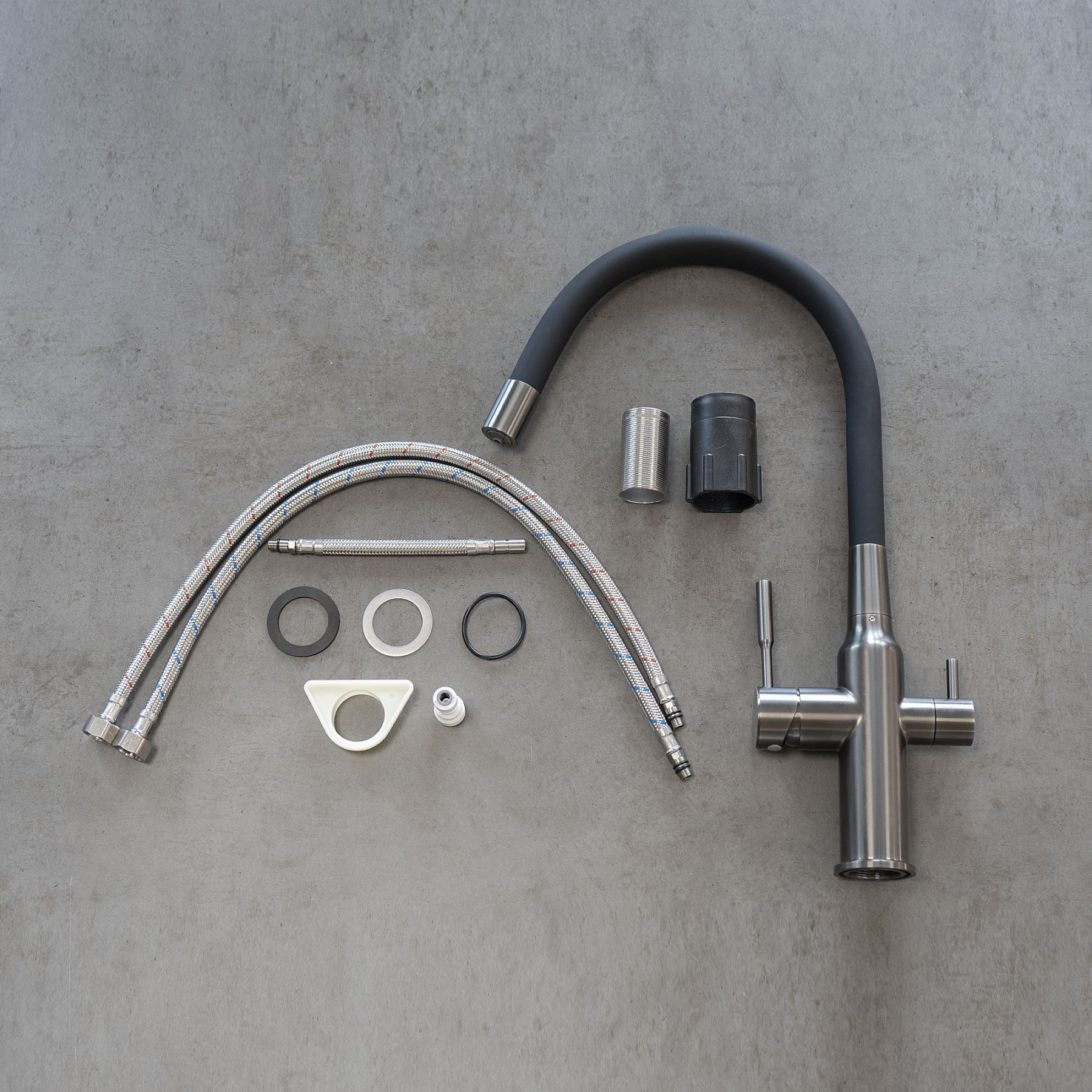 EXPERT - новая серия смесителей с гибким изливом и подключением к фильтру с питьевой водой.Преимуществом серии является комфорт: теперь не нужно устанавливать два отдельных смесителя - для питьевой и водопроводной воды - достаточно смесителя Expert, который объединяет достоинства двух изделий в одном эргономичном корпусе.Комплектация: