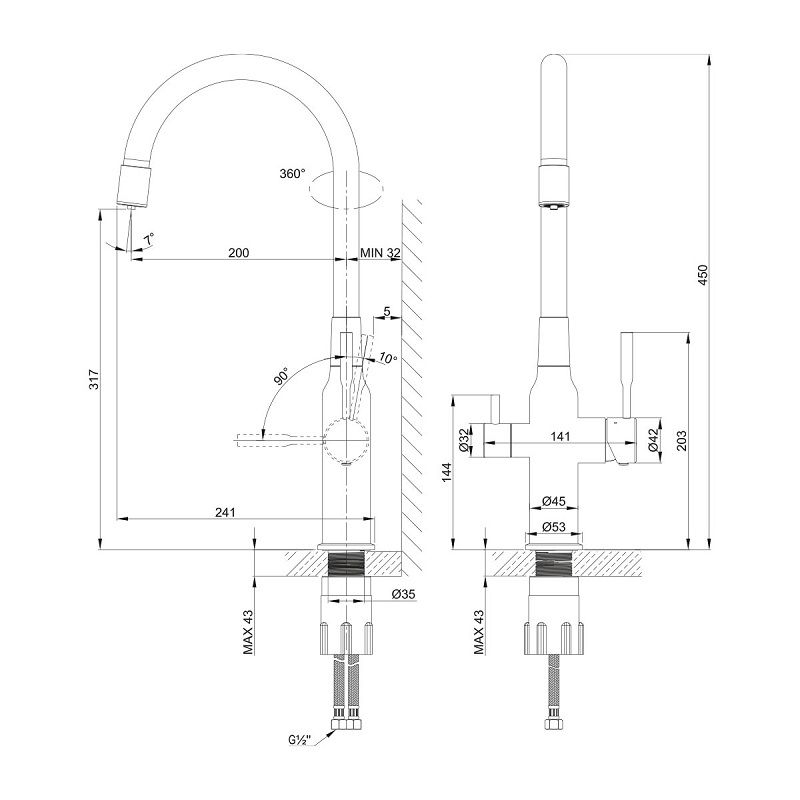 Для крана с питьевой водой: кран-букса с керамическими пластинами (угол поворота – 90 градусов)