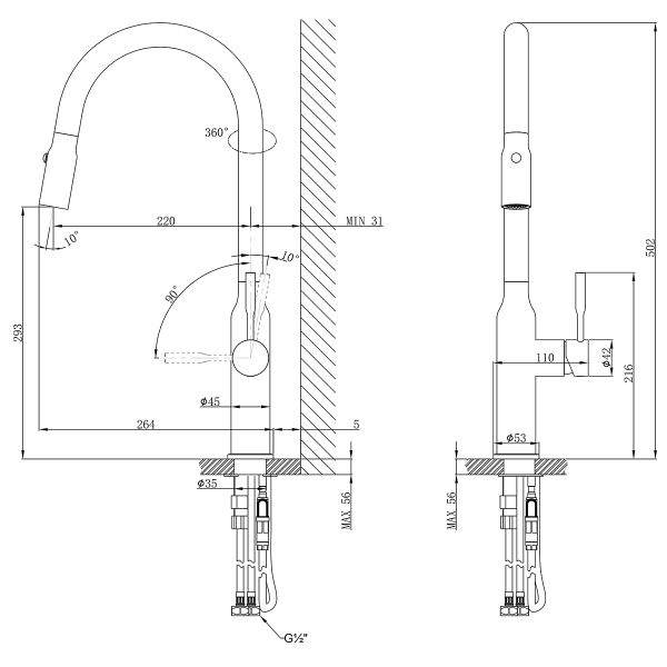Выдвижной излив:да