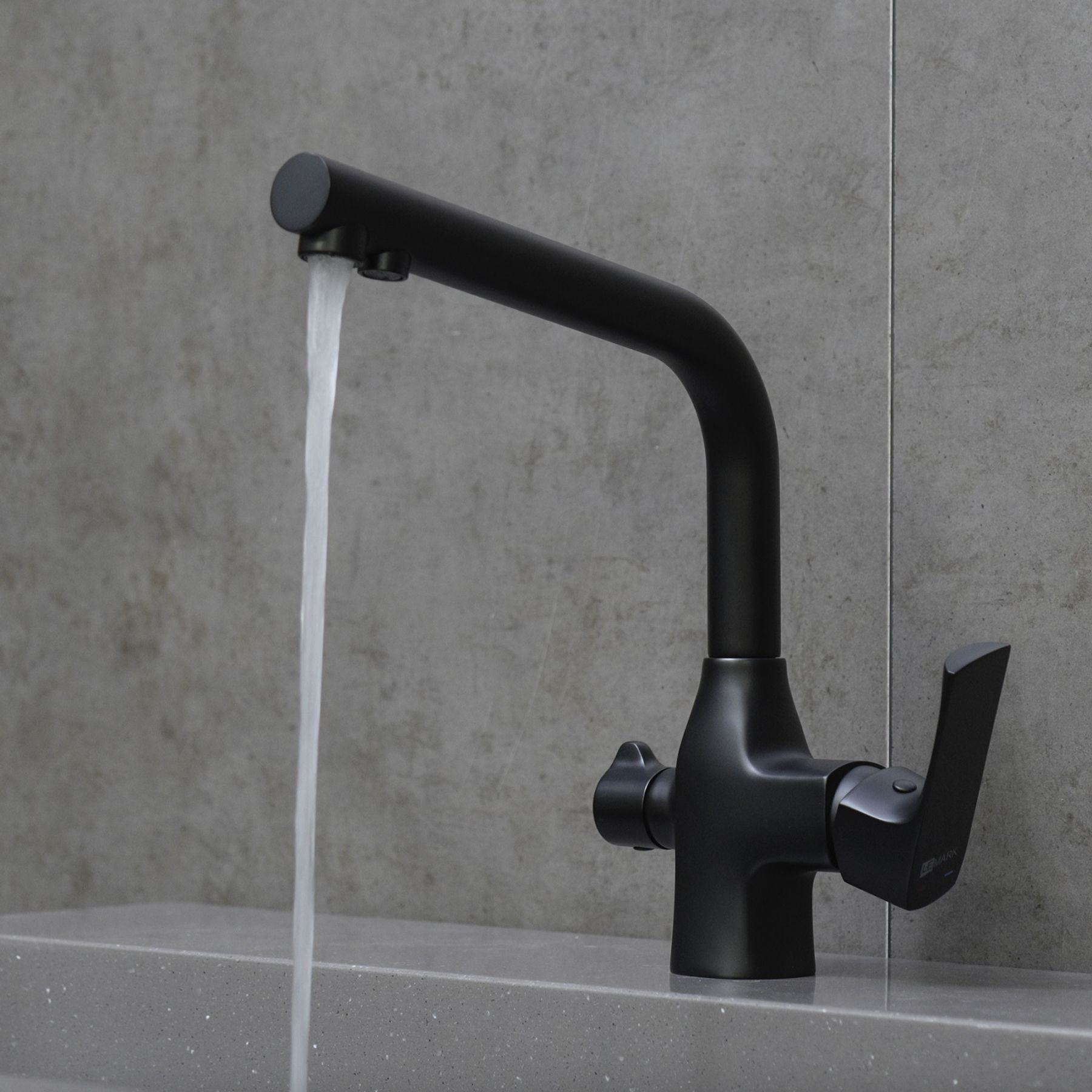 Смеситель для кухни Lemark Ursus LM7258BL с подключением к фильтру с питьевой водой чёрный купить