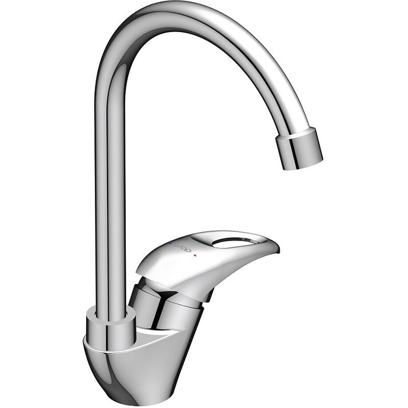 Однорычажный смеситель для кухни Dorff Comfort D8000000.Высокий поворотный смеситель для кухни Comfort с износостойким хромированным покрытием – настоящая находка для практичных хозяев, которые ценят качество, долговечность и доступные цены. Современный высокотехнологичный полимерный материал обеспечит безопасность здоровья ваших близких и долговечность продукции. А стильный универсальный дизайн позволит смесителю украсить кухню, выполненную в любом стиле.