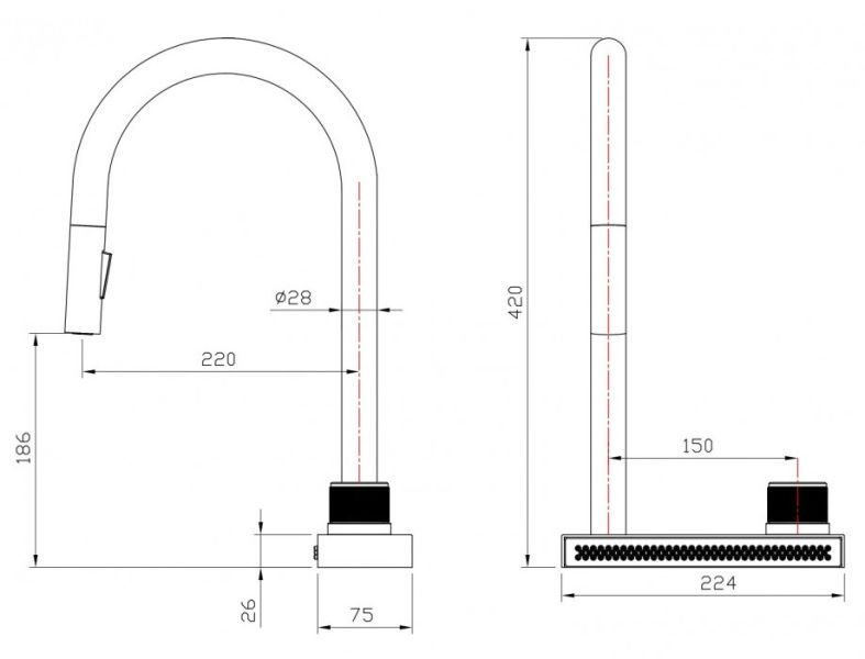 Длина излива, см:22.4