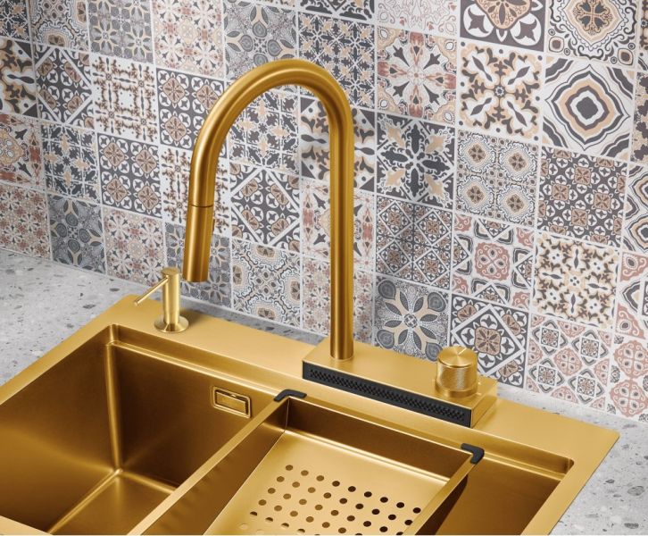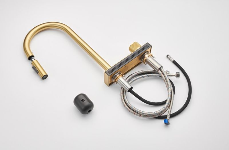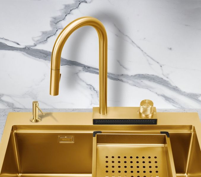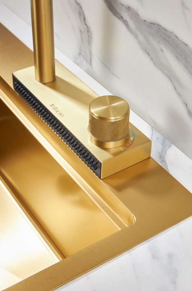 Смеситель для кухни Milacio Ultra MCU.556.GD с вытяжной лейкой и каскадным душем брашированное золото купить