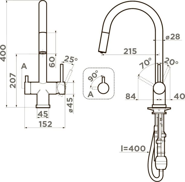 Смеситель имеет совмещенный излив для фильтрованной воды
