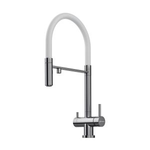 • Уникальная запатентованная конструкция - сочетание гибкого шланга и подачи фильтрованной воды; • Сменный гибкий шланг; • Современный дизайн и удобство использования, благодаря высокому изливу; • Технология PURE LIFE: Подключение фильтра для очистки воды. Фильтрованная вода подается по отдельной трубке и не смешивается с водопроводной водой; • Высококачественная латунь сохранит воду чистой и здоровой; • Аэратор произведен из пластика, благодаря чему на нем никогда не появится известкового налета и ржавчины; • Коробка внутри проложена поролоном, который обеспечит сохранность изделия при транспортировке; • Полный набор креплений, соединительных шлангов, подробная инструкция и гарантийный талон в комплекте.