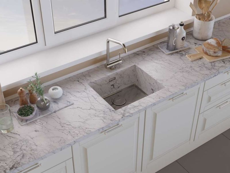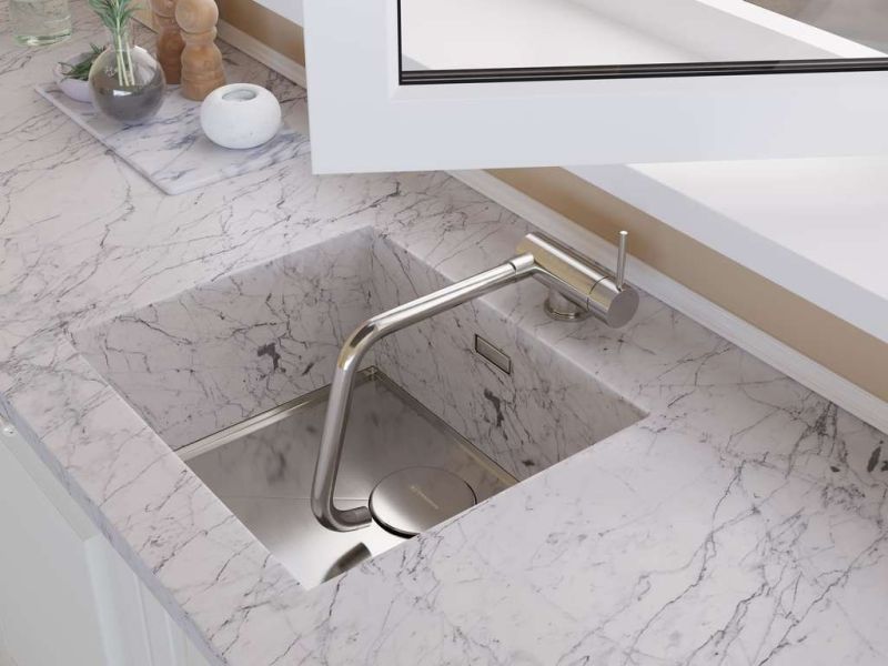 - Смеситель можно встроить в мойку любого материала и типа монтажа.