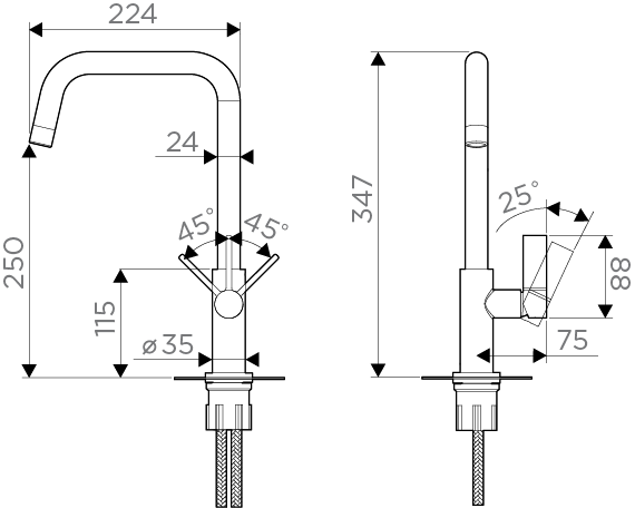 • Современный утонченный дизайн и удобство использования, благодаря высокому изливу; • Диаметр картриджа 25 мм; • Высококачественная латунь сохранит воду чистой и здоровой; • Аэратор произведен из пластика, благодаря чему на нем никогда не появится известкового налета и ржавчины; • Коробка внутри проложена поролоном, который обеспечит сохранность изделия при транспортировке; • Полный набор креплений, соединительных шлангов, подробная инструкция и гарантийный талон в комплекте.