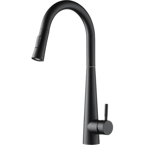 Смеситель Orange Steel для кухонной мойки, с вытяжным изливом, цвет черный, M99-007bОднозахватный смеситель для кухни с поворотным изливом и вытяжным душем Orange Steel украсит современный интерьер. Благодаря фирменному картриджу Orange управление напором и температурой воды легкое и плавное. Корпус выполнен из высококачественной латуни, не подверженной коррозии от длительного контакта с водой. Износостойкое покрытие в цвете матовый черный нанесено методом порошковой окраски с многоступенчатой системой подготовки и температурной обработкой. Особенностью данной модели является наличие вытяжного излива (650 мм), что упростит мытье посуды и гигиеническую уборку мойки - 2 режима струи.Комплектация: смеситель, набор креплений, гибкая подводка, инструкция