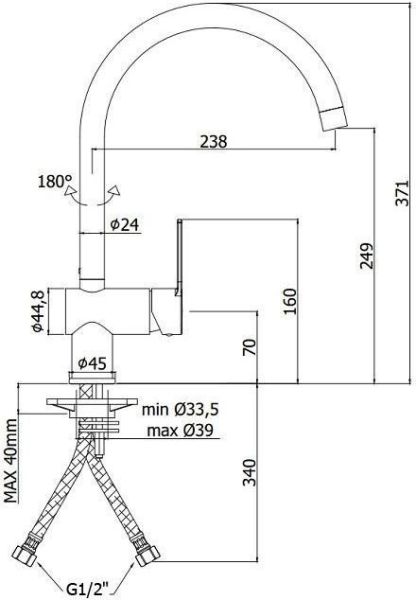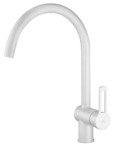 Смеситель для мойки с поворот.изливом, Белый матовыйСмеситель для кухни Paffoni Ringo RIN180BO.ВНИМАНИЕ! В монтажной схеме указан европейский стандарт подводки 3/8, мы предлагаем комплект, адаптированный к российским условиям со стандартом подводки 1/2.Комплектация: